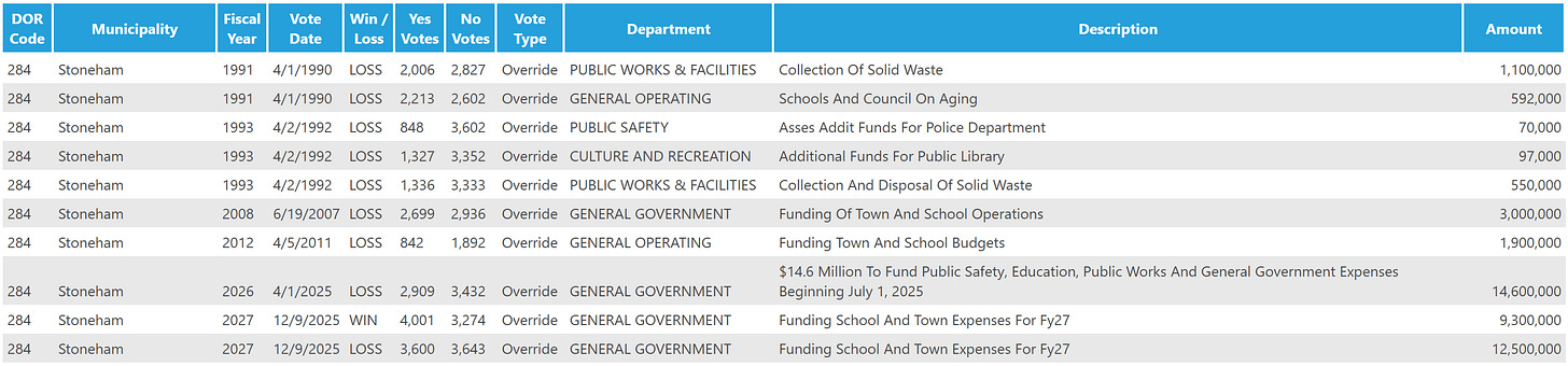 On December 9, 2025, for the first time in 45 years under Massachusetts Proposition 2½, and after five previous failed attempts dating back to 1991, Stoneham passed its first override. I could not be prouder of this community. We came together, listened to facts, reasoned with one another, engaged in civic debate, and voted to save our town. The positive effects of this decision will resonate for years, guiding Stoneham toward a future of progress, growth, and deeper community participation.